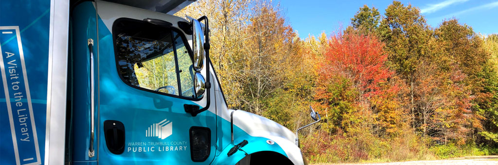 11/02/2020 – Current: The Warren-Trumbull County Public Library Bookmobile is shown here traveling near Mosquito Lake in early fall.